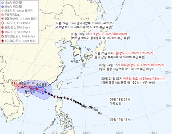 <제18호 태풍 라가사 예상 경로, 자료원 : 기상청>