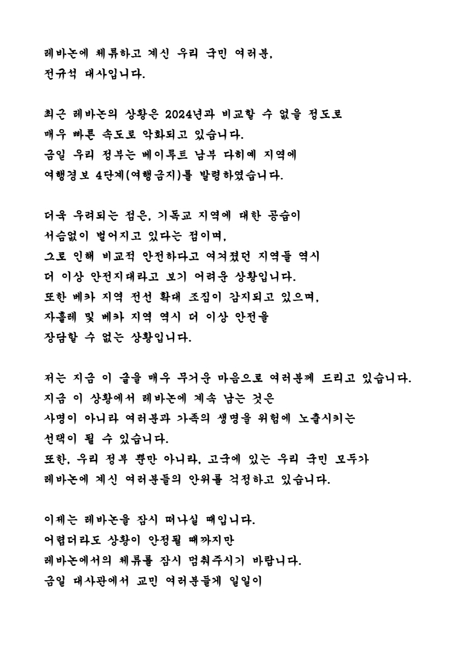 교민들께 드리는 말씀