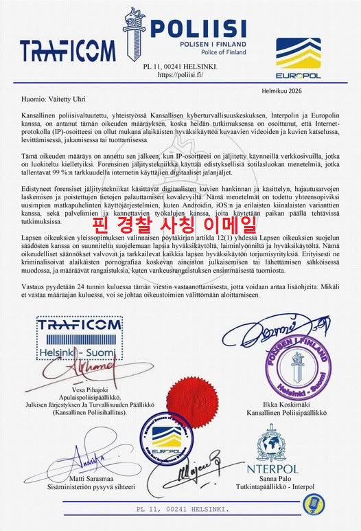 - 핀란드 경찰 사칭 피싱 관련 주의 안내 -