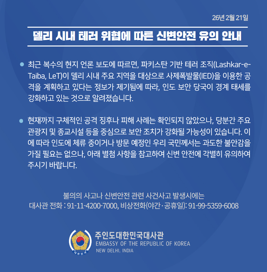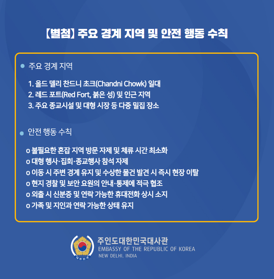 델리 시내 테러 위협에 따른 신변안전 유의 안내