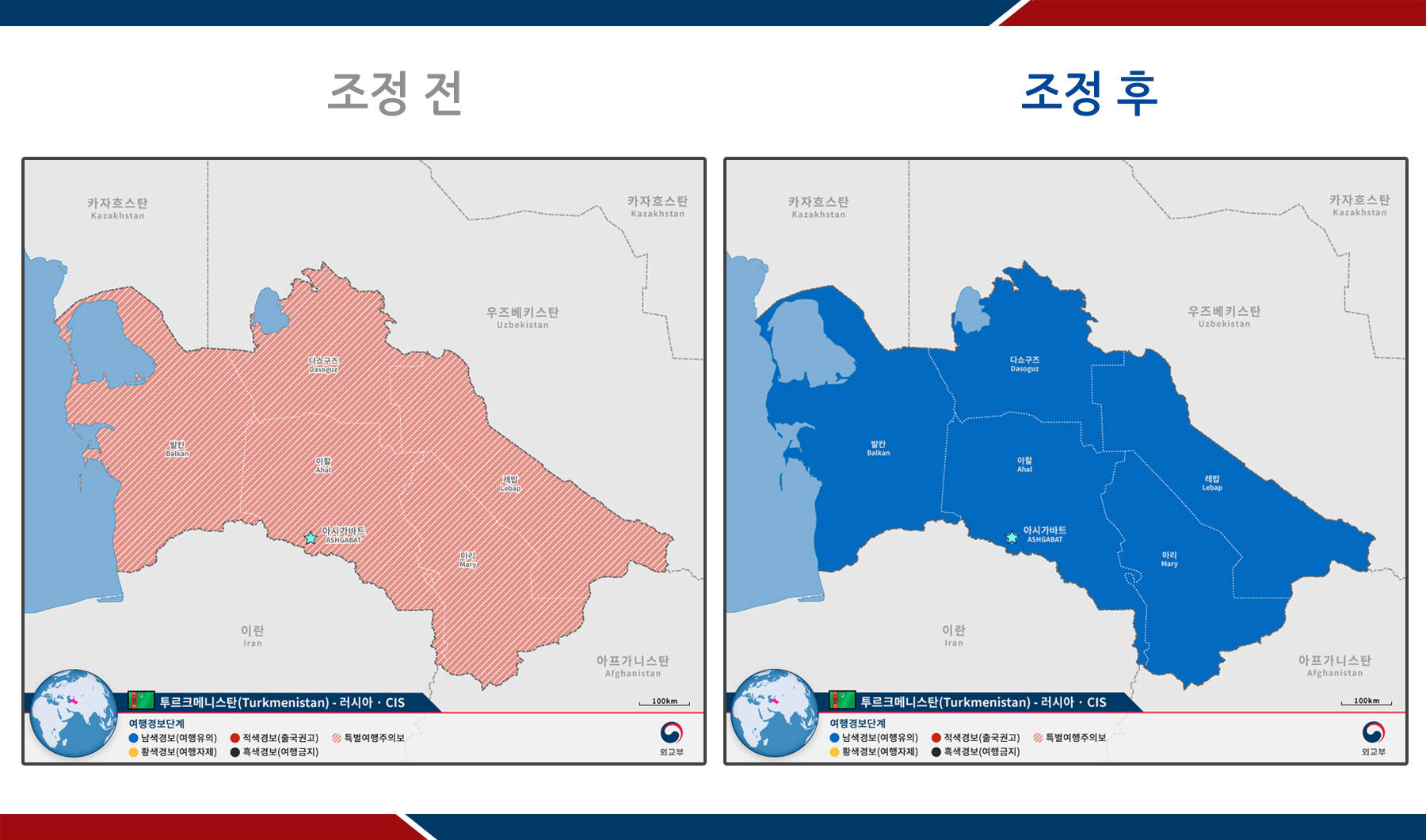 ※ 붙임 : 여행경보 단계 조정 결과. 끝.
