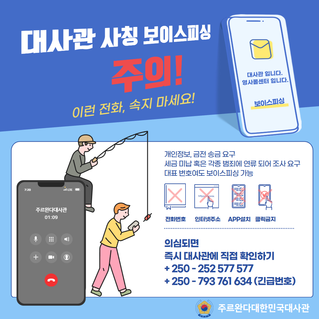(안전공지) 주의하십시다. 대사관 사칭 보이스피싱 주의 안내