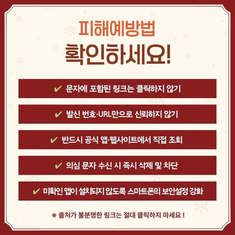 예방수칙 포스터를 참고하시어 피해 예방에 활용하시기 바랍니다.