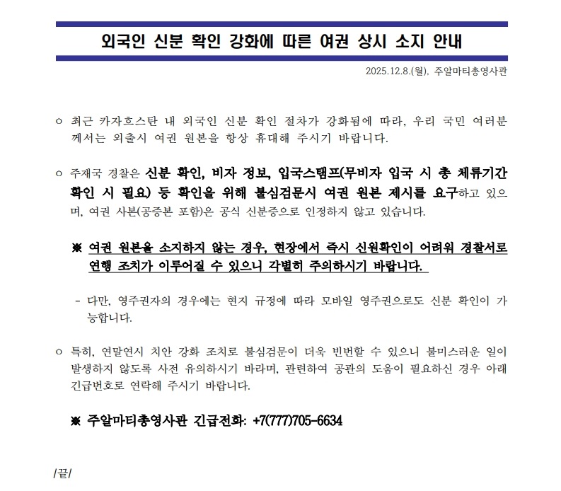 (중요) 외국인 신분 확인 강화에 따른 여권 상시 소지 안내