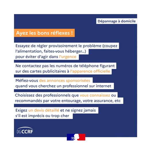 배관 누수나 열쇠 분실, 문 잠김 등 가정 내 긴급 수리가 필요한 상황에서 부당한 과다청구 피해가 발생할 수 있습니다. 프랑스 소비자보호청(DGCCRF)이 권고하는 다음 수칙을 확인하시어 피해를 입지 않도록 유의하시기 바랍니다.