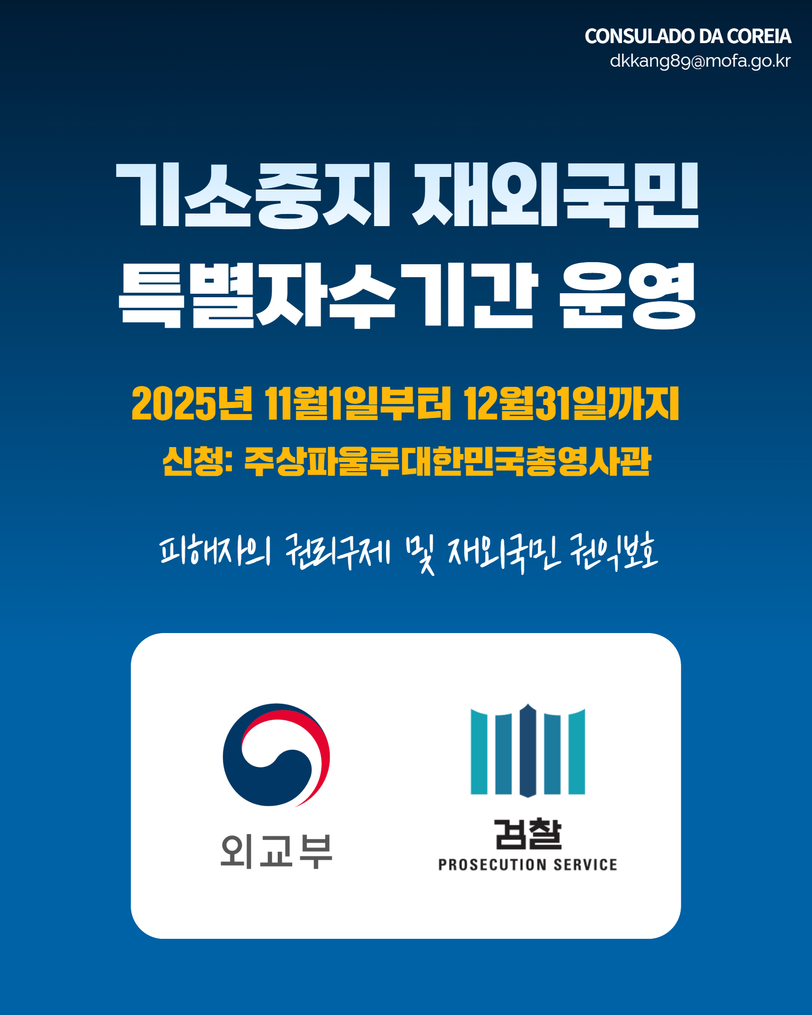 [공지] 총영사관, 기소중지 재외국민 특별자수기간(2025.11.1.~12.31.) 운영