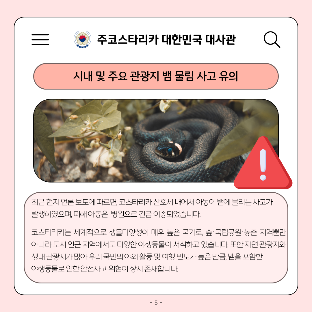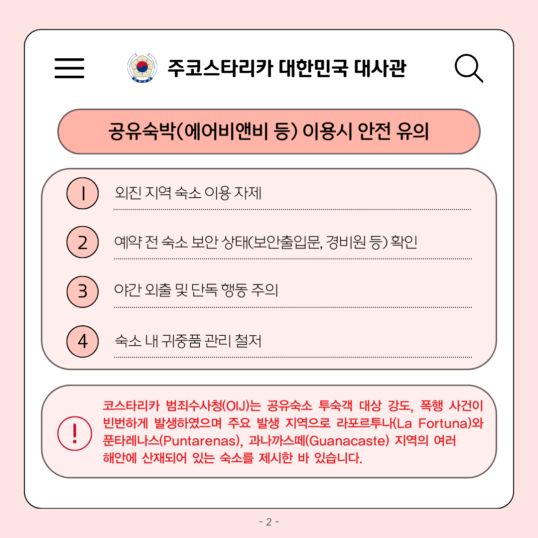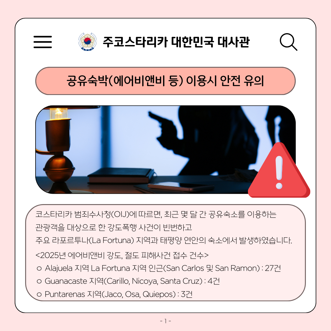 코스타리카의 2026년 1월 3주차 치안·안전 동향을 종합·분석하여 카드뉴스로 안내드립니다. 코스타리카에 체류중인 우리 국민께서는 아래 내용을 참고하시어 각별한 주의를 당부드립니다.