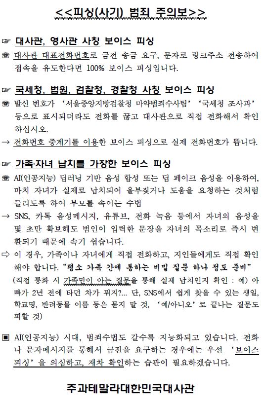 보이스피싱 사기 주의보 공지 드리니 모두 유의하시기 바랍니다.