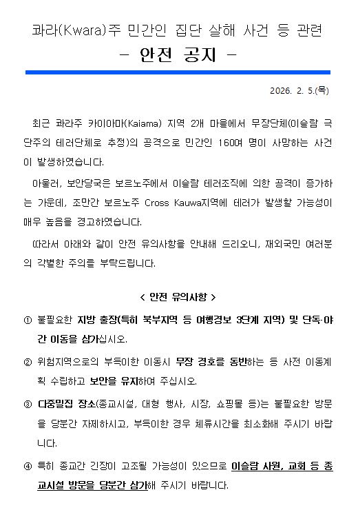 (안전공지) 콰라州 민간인 집단 살해 사건 관련