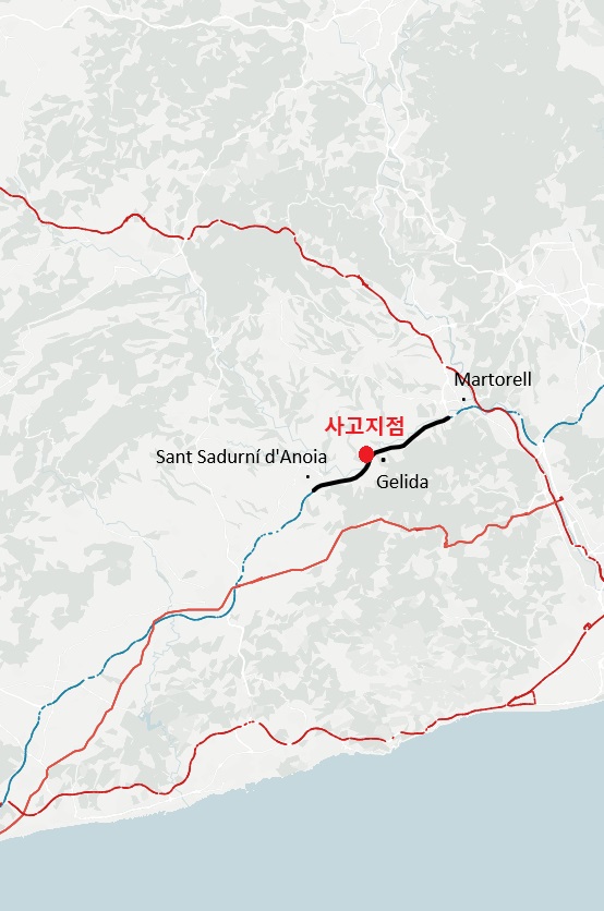 폐쇄 구간은 Martorell 부터 Sant Sadurni d'Anoia 까지 이며, 약 1-2주간 재개통되지 않을 예정입니다.