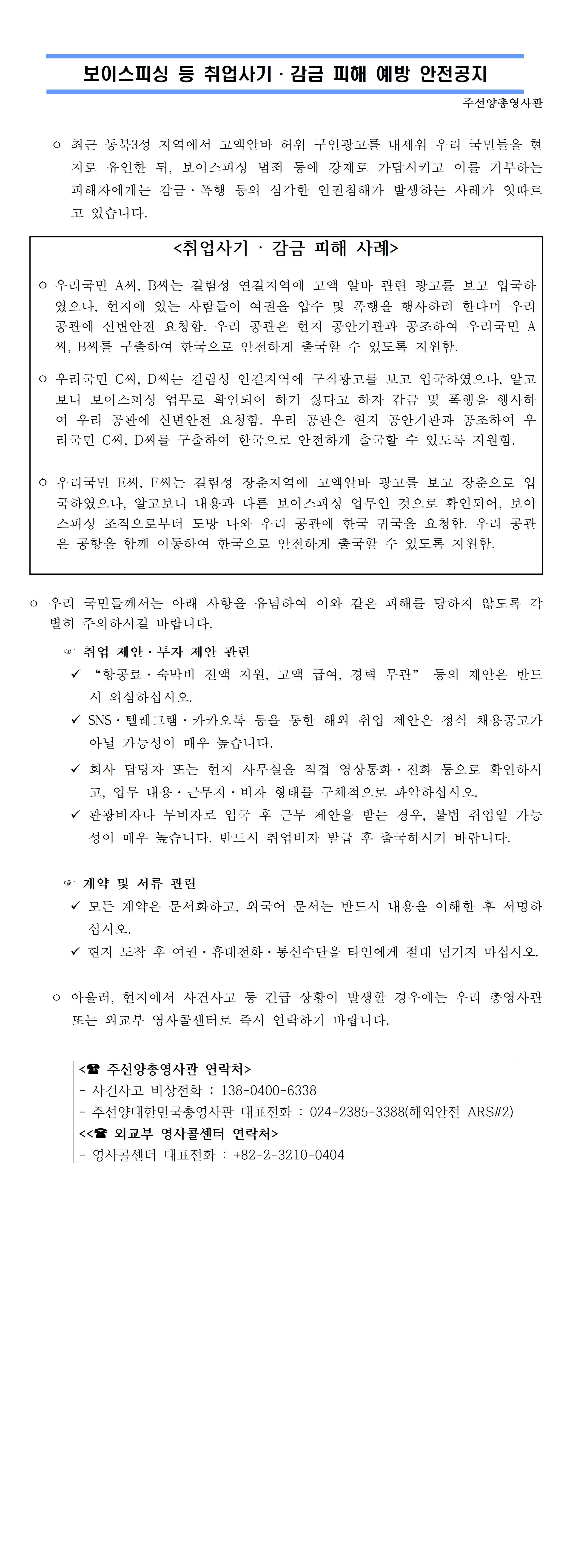 보이스피싱 등 취업사기 감금 피해 예방 안전공지