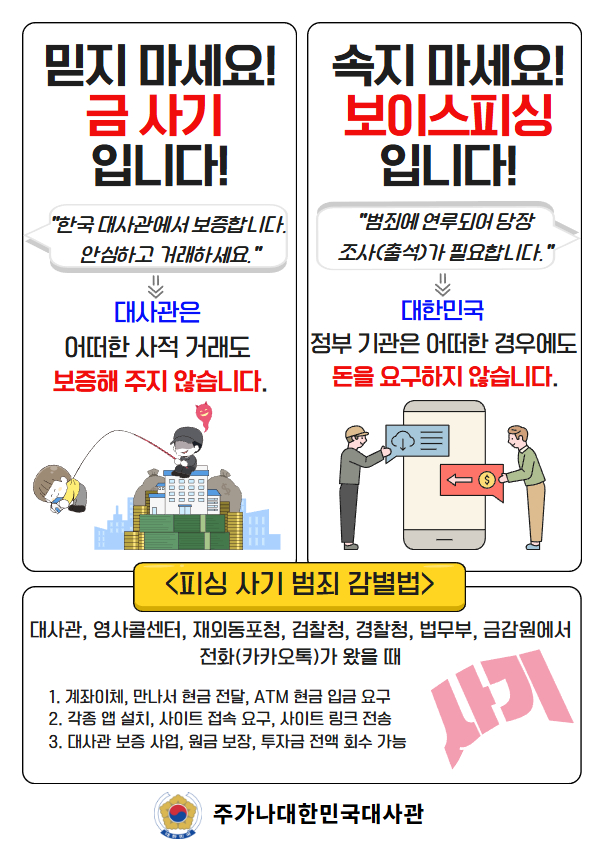 재외공관 등 사칭 피싱범죄, 금 사기범죄 등 피해 예방 카드뉴스